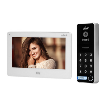 Zestaw wideodomofonowy, bezsłuchawkowy kolor, LCD 7", dotykowy, menu OSD, pamięć, gniazdo na kartę SD, DVR, sterowanie bramą, z szyfratorem i RFID, biały, TAURI MEMO