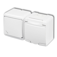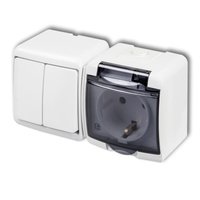 KARLIK JUNIOR WGHP-2sp Łącznik świecznikowy z gniazdem hermetycznym SCHUKO (klapka biała; przesłony torów prądowych)