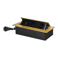 Gniazdo meblowe wpuszczane w blat z płaskim frezowanym rantem i przewodem 1,5m, 3x2P+Z (Schuko), złote
