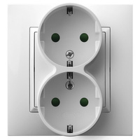 Ospel aria GP-2USP/33 Gniazdo podwójne z uziemieniem schuko z przesłonami torów prądowych, kompletne z ramką