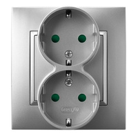 Ospel aria GP-2USP/00 Gniazdo podwójne z uziemieniem schuko z przesłonami torów prądowych, kompletne z ramką
