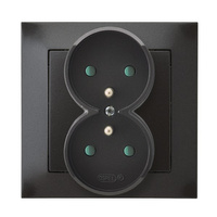 OSPEL IMPRESJA GP-2YSP/23 Gniazdo podwójne z uziemieniem schuko z przesłonami torów prądowych, kompletne z ramką