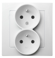 Ospel as GP-2GC/00 Gniazdo podwójne z uziemieniem z funkcją niezamienności faz, kompletne z ramką
