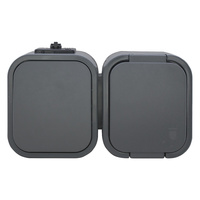 Gniazdo pojedyncze 2P+Z bryzgood. z klapką w kolorze wyrobu+ Łącznik 1-biegunowy IP44, SMART, brązowy
