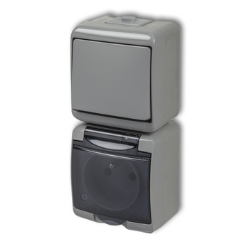 KARLIK JUNIOR 10WGHP-2 Łącznik świecznikowy z gniazdem pojedynczym z uziemieniem 2P+Z (klapka popielata; bez przesłon)