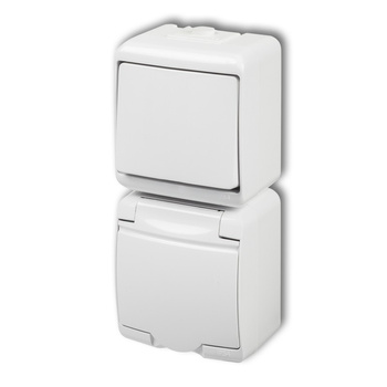 KARLIK JUNIOR WGHP-1 Łącznik jednobiegunowy z gniazdem pojedynczym z uziemieniem 2P+Z (klapka biała; bez przesłon)