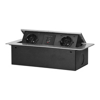 Wpuszczane gniazdo meblowe z ładowarką USB i przewodem 1,5m, 1x2P+Z Schuko, 2xUSB (typ A, 2,1A), płaski rant frezowany, czarny