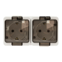 Gniazdo podwójne 2x 2P+Z SCHUKO bryzgoodporne z klapką dymną IP44, SMART, brązowy