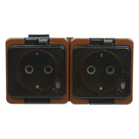 Gniazdo podwójne2x2P+Z SCHUKO bryzgoodporne z klapką w kolorze wyrobu IP44, SMART, brązowy