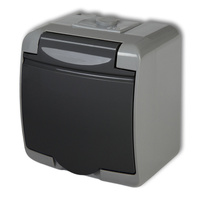( ilość produktów: 11109 )KARLIK JUNIOR Gniazdo pojedyncze natynkowe hermetyczne z uziemieniem 30GHE-1 klapka grafitowa