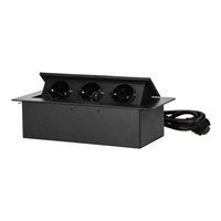 Gniazdo meblowe wpuszczane w blat z płaskim frezowanym rantem i pełną spodnią zabudową oraz przewodem 1,5m, 3x2P+Z (Schuko), czarne