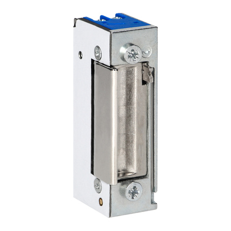 Produkt wyróżnia się mechanizmem blokady, który uniemożliwia zaryglowanie się elektrozaczepu, co powoduje, że drzwi pozostają stale otwarte.