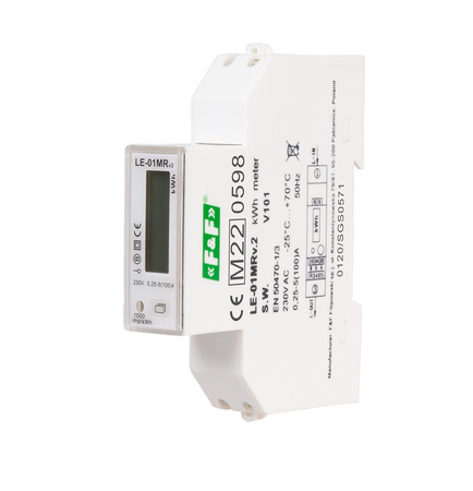 Jednofazowy licznik zużycia energii elektrycznej LE-01MR v2 umożliwia 4-kwadrantowy pomiar energii i mocy oraz monitorowanie wielu dodatkowych parametrów sieci, takich jak: napięcie, prąd, moc czynna, moc bierna, moc pozorna częstotliwość, współczynnik mocy. Licznik posiada dodatkowe, kasowalne liczniki energii czynnej i biernej. Wyposażony jest również w interfejs komunikacyjny RS-485 obsługujący protokół Modbus RTU zapewniający zdalny odczyt i konfigurację licznika.