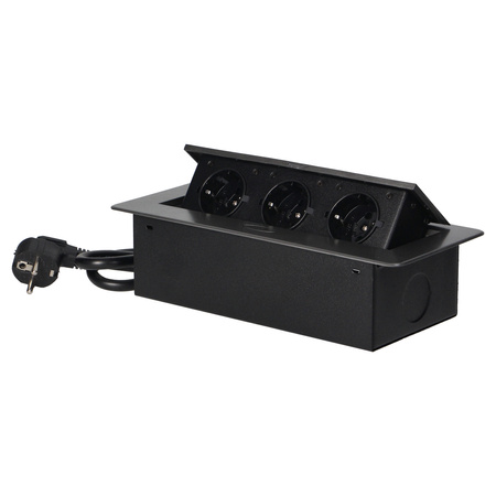 Gniazda meblowe w obudowie wpuszczanej w blat z płaskim frezowanym rantem i przewodem 1,5m, 3x2P+Z (Schuko), grafitowe