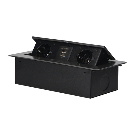 Gniazda meblowe wpuszczane w blat z płaskim frezowanym rantem i ładowarką USB, 2x2P+Z (Schuko), 2xUSB, grafit