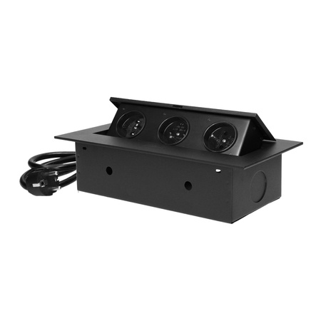 Gniazdo meblowe wpuszczane w blat z płaskim rantem i przewodem 1,5m, 3x2P+Z, czarne