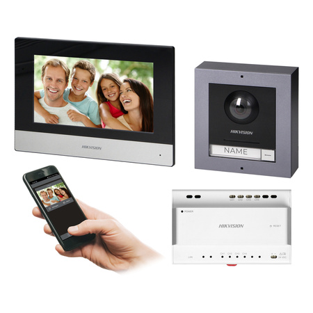 HIKVISION DS-KIS702Y zestaw wideodomofonowy 2-żyłowy jednorodzinny z monitorem dotykowym 7" z WiFi, panelem zewnętrznym z kamerą FullHD i dystrybutorem 4-kanałowym