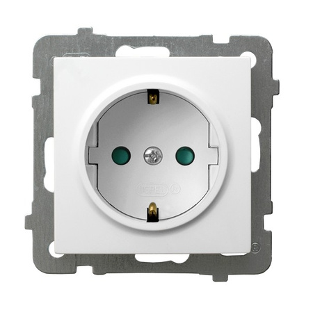 OSPEL AS ANTYBAKTERYJNY GP-1GASP/m/00 Gniazdo pojedyncze z uziemieniem schuko z przesłonami torów prądowych,produkt zawiera nanocząsteczki srebra
