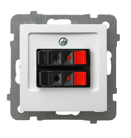 Gniazdo głośnikowe podwójne GG-2G/m/00 - stosowane jest w miejscach, w których potrzebne jest podłączenie głośnika do oddalonego źródła sygnału, np. głośniki satelitarne do kina domowego. Dzięki solidnemu wykonaniu i prostemu montażowi idealnie sprawdza się zarówno w domowych systemach nagłośnieniowych, jak i w profesjonalnych instalacjach audio. Gniazdo głośnikowe jest koloru białego. Minimalistyczny styl dopasuje się do każdego pomieszczenia dodając eleganckiego stylu. GG-2G/m/00 wykonany jest z materiału najwyższej jakości, odpornego na zarysowania, przebarwienia i promieniowanie UV, dzięki czemu oferuje trwałość.