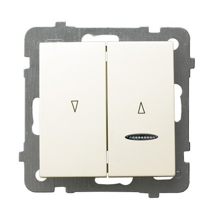 Łącznik żaluzjowy z blokadą i podświetleniem ŁP-7GBS/m/27 wyposażony jest w dwa przyciski. Stosowany do żaluzji (podnoszenie/opuszczanie). Pozwala na łączenie w obrębie dwóch oddzielnych obwodów, ale uniemożliwia łączenie ich jednocześnie. Posiada podświetlenie koloru pomarańczowego, co umożliwia szybkie zlokalizowanie go kiedy jest ciemno. ŁP-7GBS/m/27 wykonany z materiałów najwyższej jakości, oferuje nie tylko estetykę, ale również trwałość. Jego montaż podtynkowy umożliwia eleganckie i dyskretne dopasowanie do ściany, co sprawia, że jest to rozwiązanie idealne zarówno do nowoczesnych, jak i klasycznych aranżacji wnętrz. Minimalistyczny styl dopasuje się do każdego pomieszczenia dodając eleganckiego stylu. Łącznik żaluzjowy jest w kolorze ecru, a stopień ochrony to IP20. To praktyczne rozwiązanie dedykowane jest do użytku wewnątrz pomieszczeń. Doskonale sprawdzi się w każdym domu, czy biurze.