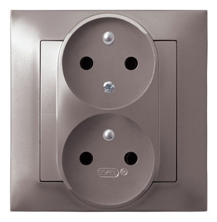 OSPEL IMPRESJA GP-2YC/23 Gniazdo podwójne z uziemieniem z funkcją niezamienności faz, kompletne z ramką