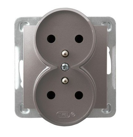 Gniazdo podwójne GP-2YRZ/m/23 - przeznaczone jest do montażu podtynkowego. Posiada uziemienie. Dostosowany do napięcia znamionowego 250V oraz prądu znamionowego 16A. Gniazdo podwójne jest koloru tytanowego. Minimalistyczny styl dopasuje się do każdego pomieszczenia dodając eleganckiego stylu. GP-2YRZ/m/23 jest z najwyższej jakości tworzywa sztucznego, odpornego na zarysowania, przebarwienia i promieniowanie UV, dzięki czemu oferuje trwałość. Posiada stopień ochrony IP20, co wskazuje na przystosowane do montażu wewnątrz budynków.