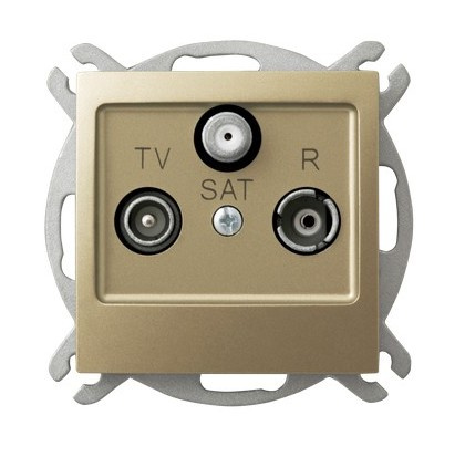 Gniazdo RTV-SAT przelotowe GPA-YSP/m/28 - zostało wyposażone w gniazda R dla odbiorników radiowych, TV telewizyjnych oraz SAT dla tunerów satelitarnych. Znajduje zastosowanie w instalacjach indywidualnych gdzie gniazda łączone są szeregowo tzn. od anteny biegnie jeden kabel poprzez poszczególne pomieszczenia. Gniazdo RTV-SAT jest koloru złotego. Minimalistyczny styl dopasuje się do każdego pomieszczenia dodając eleganckiego stylu. GPA-YSP/m/28 jest z najwyższej jakości tworzywa sztucznego, odpornego na zarysowania, przebarwienia i promieniowanie UV, dzięki czemu oferuje trwałość. Posiada stopień ochrony IP20, co wskazuje na przystosowane do montażu wewnątrz budynków.