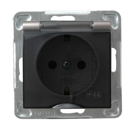 Gniazdo bryzgoszczelne schuko GPH-1YS/m/23/d - Posiada bolec uziemiający, co jest kluczowe dla bezpieczeństwa użytkowania urządzeń elektrycznych. Gniazdo bryzgoszczelne schuko jest koloru tytanowego. GPH-1YS/m/23/d wykonany jest z materiału najwyższej jakości, odpornego na zarysowania, przebarwienia i promieniowanie UV, dzięki czemu oferuje trwałość. Posiada stopień ochrony to IP44, co wskazuje na przystosowane do montażu w miejscach o podwyższonej wilgotności np. w łazience. Wyposażone w przezroczystą klapkę ochronną, zapewnia dodatkową barierę przed wodą i kurzem, jednocześnie pozwalając na dyskretne sprawdzenie stanu gniazda.