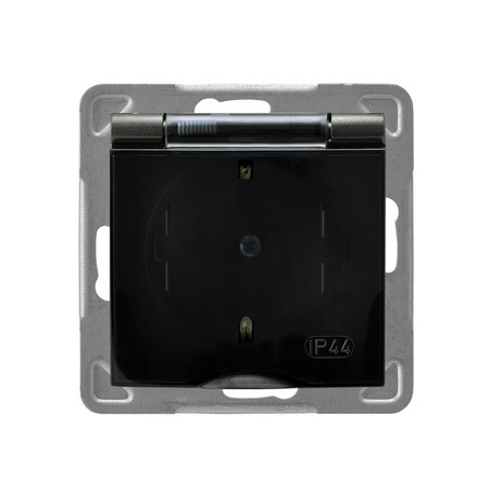 Gniazdo bryzgoszczelne schuko GPH-1YS/m/50/d - Posiada bolec uziemiający, co jest kluczowe dla bezpieczeństwa użytkowania urządzeń elektrycznych. Gniazdo bryzgoszczelne schuko jest koloru antracytowego. GPH-1YS/m/50/d wykonany jest z materiału najwyższej jakości, odpornego na zarysowania, przebarwienia i promieniowanie UV, dzięki czemu oferuje trwałość. Posiada stopień ochrony to IP44, co wskazuje na przystosowane do montażu w miejscach o podwyższonej wilgotności np. w łazience. Wyposażone w przezroczystą klapkę ochronną, zapewnia dodatkową barierę przed wodą i kurzem, jednocześnie pozwalając na dyskretne sprawdzenie stanu gniazda.