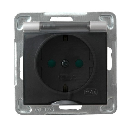 OSPEL IMPRESJA GPH-1YSP/m/18/d Gniazdo bryzgoszczelne z uziemieniem schuko IP-44 z przesłonami torów prądowych wieczko przezroczyste