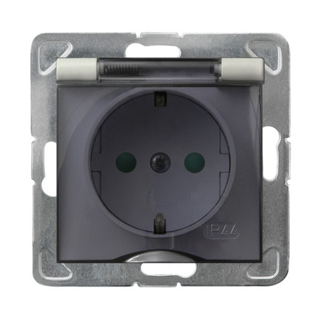 OSPEL IMPRESJA GPH-1YSP/m/27/d Gniazdo bryzgoszczelne z uziemieniem schuko IP-44 z przesłonami torów prądowych wieczko przezroczyste