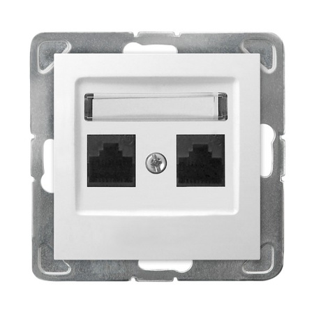 Gniazdo komputerowe podwójne GPK-2Y/K/m/00 - to podwójne gniazdo (typu RJ45) przeznaczone do podłączenia dwóch kabli sygnałowych kategorii 5e (UTP) typu skrętka (internet). Gniazdo jest koloru białego. GPK-2Y/K/m/00 wykonany jest z materiału najwyższej jakości, odpornego na zarysowania, przebarwienia i promieniowanie UV, dzięki czemu oferuje trwałość. Posiada stopień ochrony IP20, co wskazuje na przystosowane do montażu wewnątrz budynków.