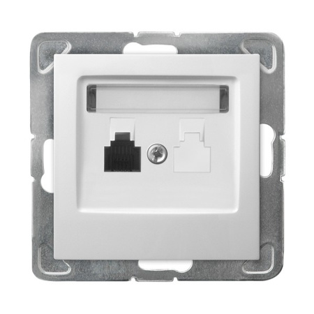 Gniazdo telefoniczne pojedyncze GPT-1Y/m/00 - służy do podłączenia jednego przewodu telefonicznego. Jego montaż podtynkowy umożliwia eleganckie i dyskretne dopasowanie do ściany, co sprawia, że jest to rozwiązanie idealne zarówno do nowoczesnych, jak i klasycznych aranżacji wnętrz. Gniazdo jest koloru białego. GPT-1Y/m/00 wykonany jest z materiału najwyższej jakości, odpornego na zarysowania, przebarwienia i promieniowanie UV, dzięki czemu oferuje trwałość. Posiada stopień ochrony IP20, co wskazuje na przystosowane do montażu wewnątrz budynków.