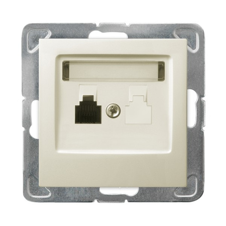 Gniazdo telefoniczne pojedyncze GPT-1Y/m/27 - służy do podłączenia jednego przewodu telefonicznego. Jego montaż podtynkowy umożliwia eleganckie i dyskretne dopasowanie do ściany, co sprawia, że jest to rozwiązanie idealne zarówno do nowoczesnych, jak i klasycznych aranżacji wnętrz. Gniazdo jest koloru ecru. GPT-1Y/m/27 wykonany jest z materiału najwyższej jakości, odpornego na zarysowania, przebarwienia i promieniowanie UV, dzięki czemu oferuje trwałość. Posiada stopień ochrony IP20, co wskazuje na przystosowane do montażu wewnątrz budynków.