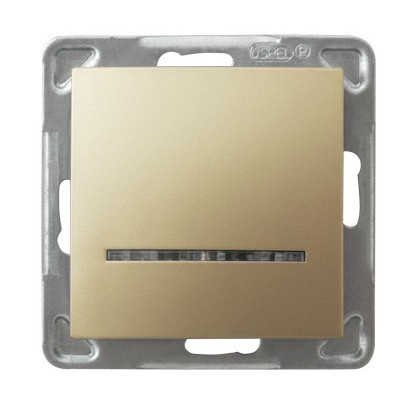 Łącznik jednobiegunowy ŁP-1YS/m/27 - wyposażony w jeden klawisz umożliwiający załączanie i wyłączanie w obrębie jednego obwodu. Dzięki swojej prostocie doskonale komponuje się zarówno nowoczesnych jak i klasycznych pomieszczeniach. Łącznik jednobiegunowy jest koloru złotym z niebieskim podświetleniem. ŁP-1YS/m/27 wykonany jest z materiału najwyższej jakości, odpornego na zarysowania, przebarwienia i promieniowanie UV, dzięki czemu oferuje trwałość. Posiada stopień ochrony IP20, co wskazuje na przystosowane do montażu wewnątrz budynków.