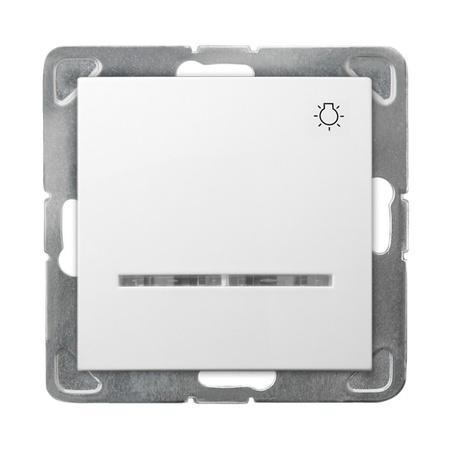 Łącznik zwierny "światło" ŁP-5YS/m/00 - wyposażony jest w jeden klawisz - odbijający. Służy do podłączenia w obrębie pojedynczego obwodu. Naciśnięcie klawisza powoduje załączenie w obwodzie i trwa do momentu puszczenia klawisza. Łącznik zwierny "światło" jest koloru białego z pomarańczowym podświetleniem. ŁP-5YS/m/00 wykonany jest z materiału najwyższej jakości, odpornego na zarysowania, przebarwienia i promieniowanie UV, dzięki czemu oferuje trwałość. Posiada stopień ochrony IP20, co wskazuje na przystosowane do montażu wewnątrz budynków.