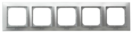 Ramka pięciokrotna RH-5Y/18 - elegancka ramka wykończeniowa pozwala umieścić 5 elementów osprzętu modułowego, np. włącznik światła lub kontakt. Minimalistyczny styl dopasuje się do każdego pomieszczenia dodając eleganckiego stylu. Ramka pięciokrotna jest koloru srebrnego. RH-5Y/18 wykonany jest z materiału najwyższej jakości, odpornego na zarysowania, przebarwienia i promieniowanie UV, dzięki czemu oferuje trwałość. Posiada stopień ochrony IP44, co wskazuje na przystosowane do montażu w miejscach o podwyższonej wilgotności.