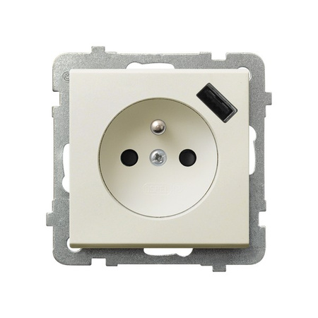 SONATA GP-1RZPUSB/m/27 Gniazdo pojedyncze z uziemieniem z przesłonami torów prądowych, z ładowarką USB