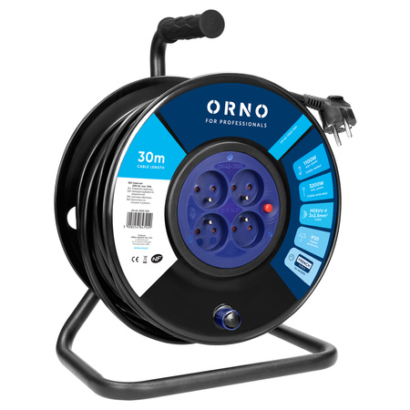 Kabel o długości 30m i specyfikacji H05VV-F 3x2,5mm2 daje elastyczność i swobodę w użytkowaniu, bez obawy o zbyt długi dystans od gniazdka. Przedłużacz posiada zabezpieczenie prądowe w postaci wyłącznika termicznego, które gwarantuje płynną pracę nawet przy intensywnym użytkowaniu. Maksymalne obciążenie wynosi 1000W/4,35A w przypadku zwiniętego kabla i 3200W/13,9A przy rozwiniętym kablu. Bez obaw można podłączyć nawet najbardziej wymagające urządzenia.
