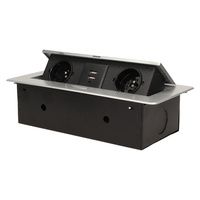 Gniazdo meblowe wpuszczane w blat z płaskim frezowanym rantem, ładowarką USB i przewodem 1,5m, 2x2P+Z (Schuko), 2xUSB (typ A+C; 3,6A), czarne