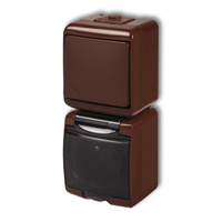 KARLIK JUNIOR 4WGHH-2 Łącznik świecznikowy z gniazdem pojedynczym z uziemieniem 2P+Z (klapka brązowa; bez przesłon)