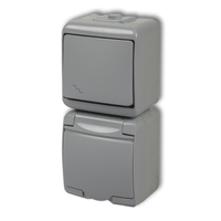 KARLIK JUNIOR 10WGHP-3 Łącznik schodowy z gniazdem pojedynczym z uziemieniem 2P+Z (klapka popielata; bez przesłon)