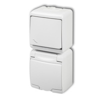 KARLIK JUNIOR WGHP-2sp Łącznik świecznikowy z gniazdem hermetycznym SCHUKO (klapka biała; przesłony torów prądowych)