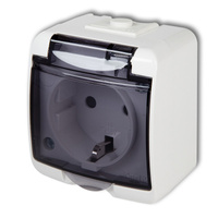 KARLIK JUNIOR Gniazdo pojedyncze natynkowe hermetyczne z uziemieniem GHE-1 2P+Z klapka biała IP54